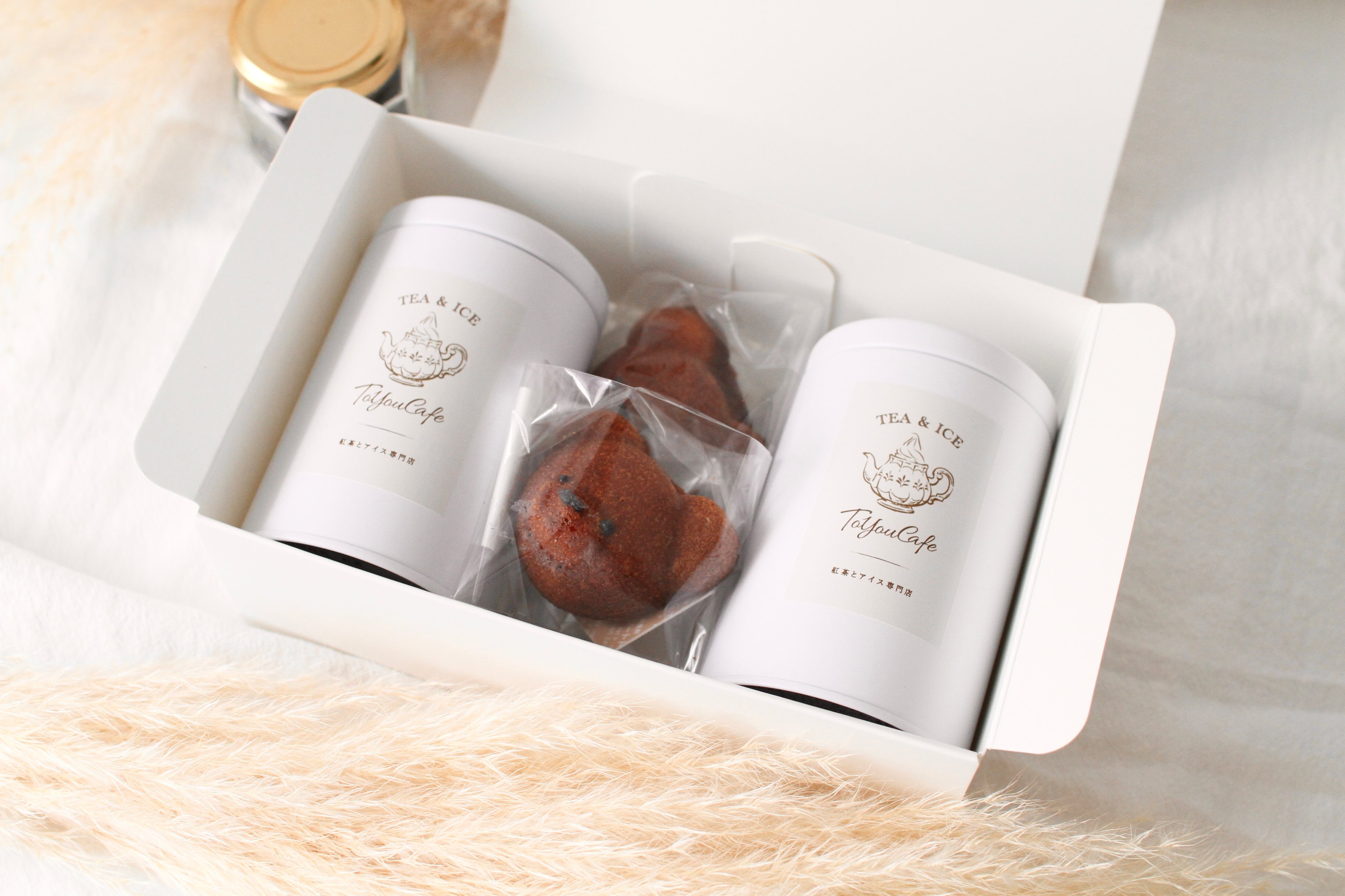 紅茶ホワイト缶には、上品な紅茶の香りがふんわりと立ち上り、一緒に入っているフィナンシェはしっとりとした食感が楽しめます。お世話になった方へのプレゼントや、ちょっとしたお礼の気持ちにぴったりです。